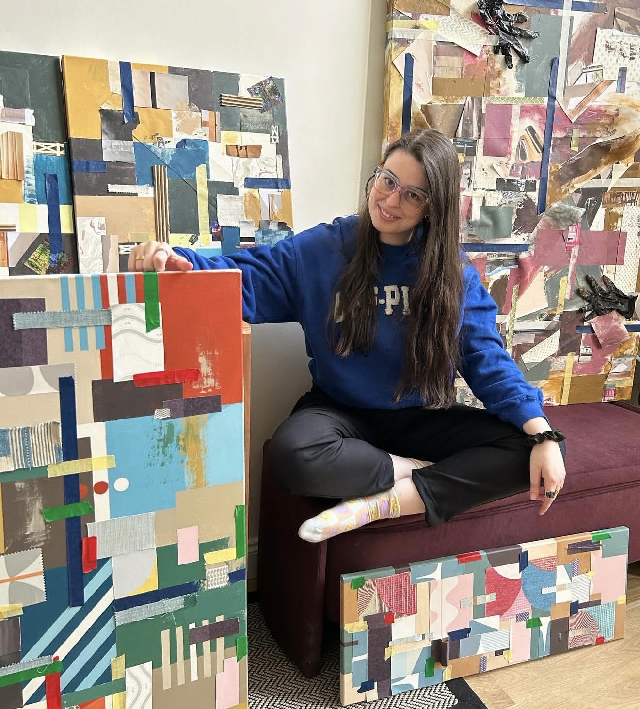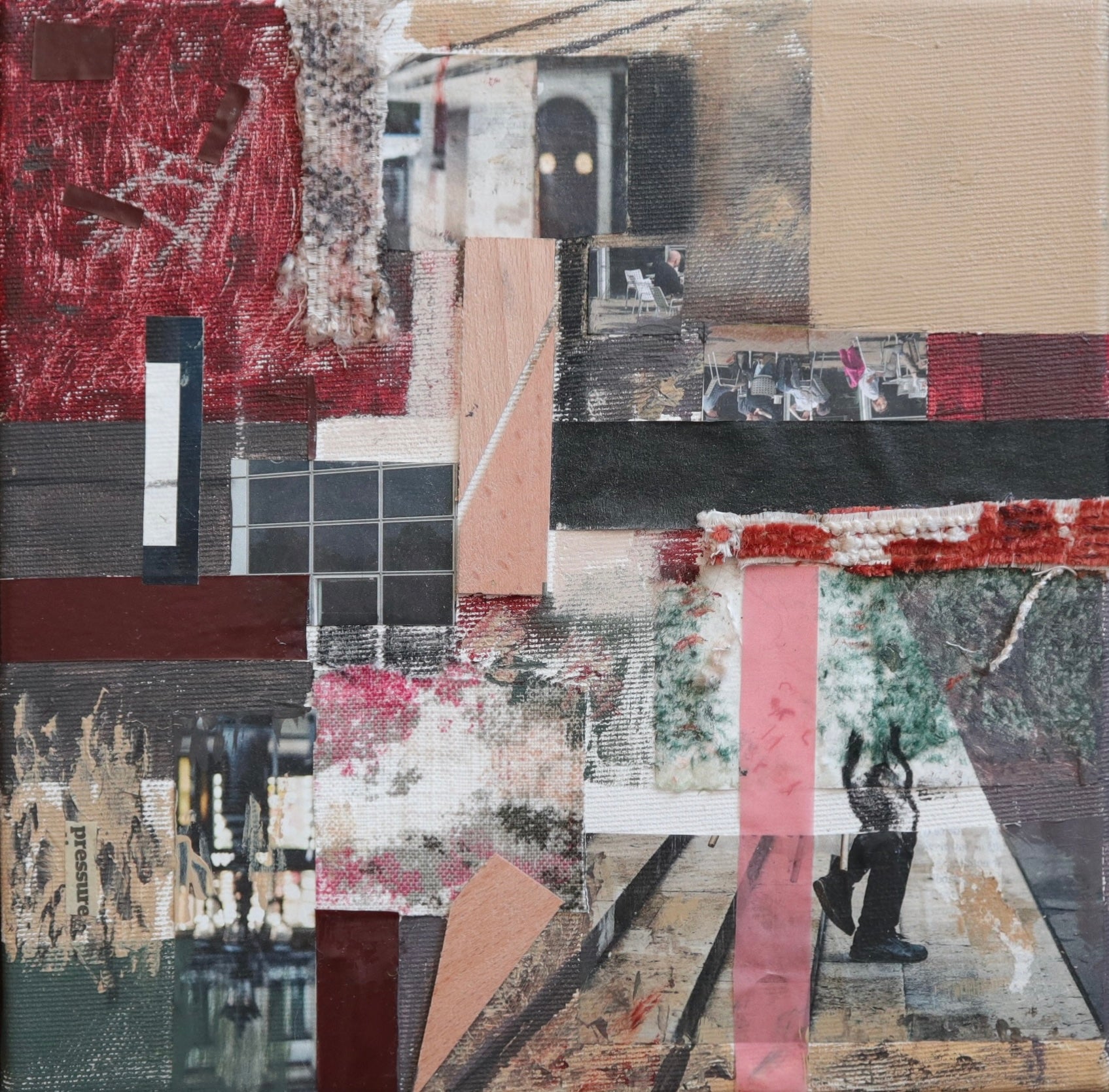 A mixed media work balancing geometric structure with intuitive mark-making, capturing a moment of grounding within ongoing movement and change.