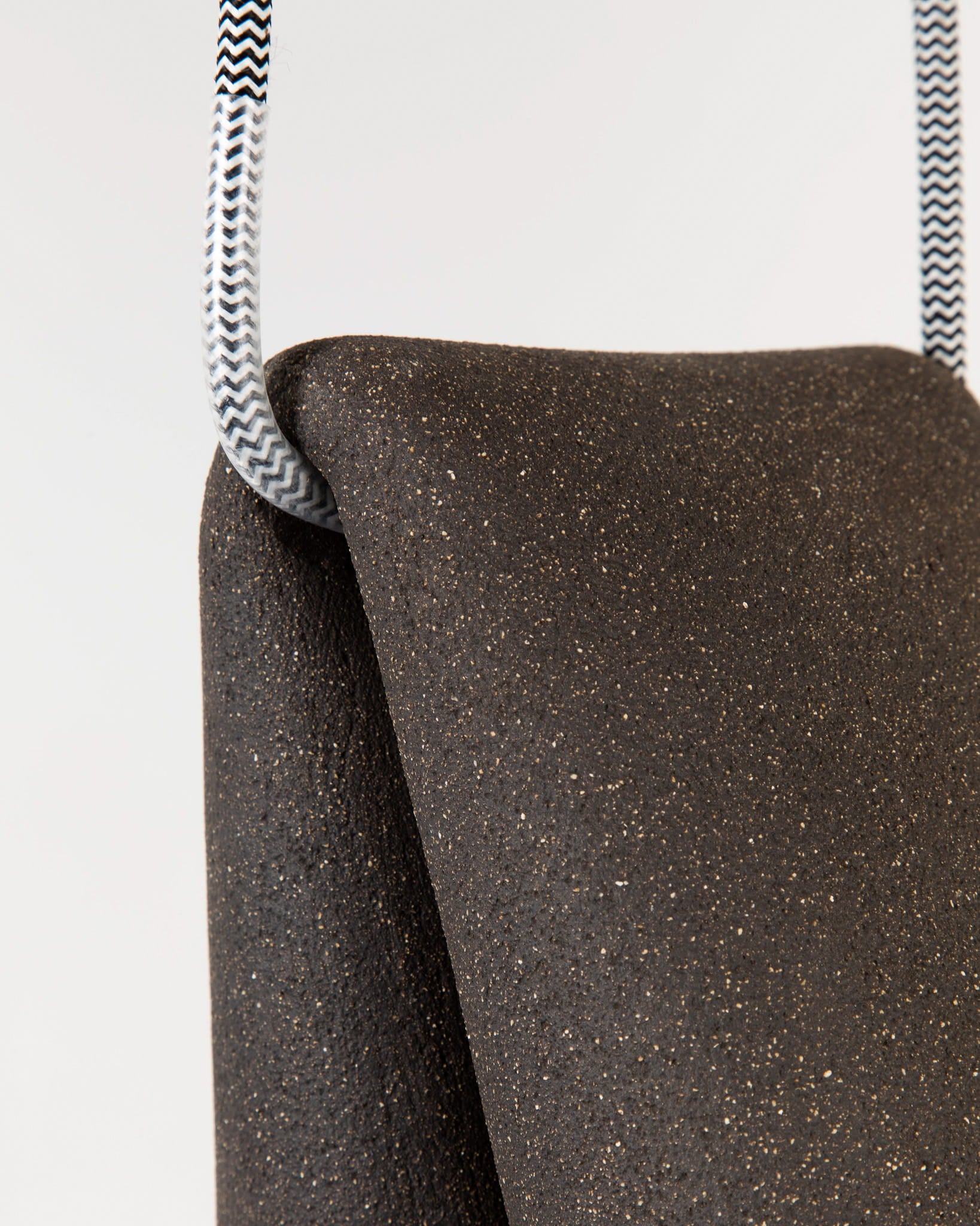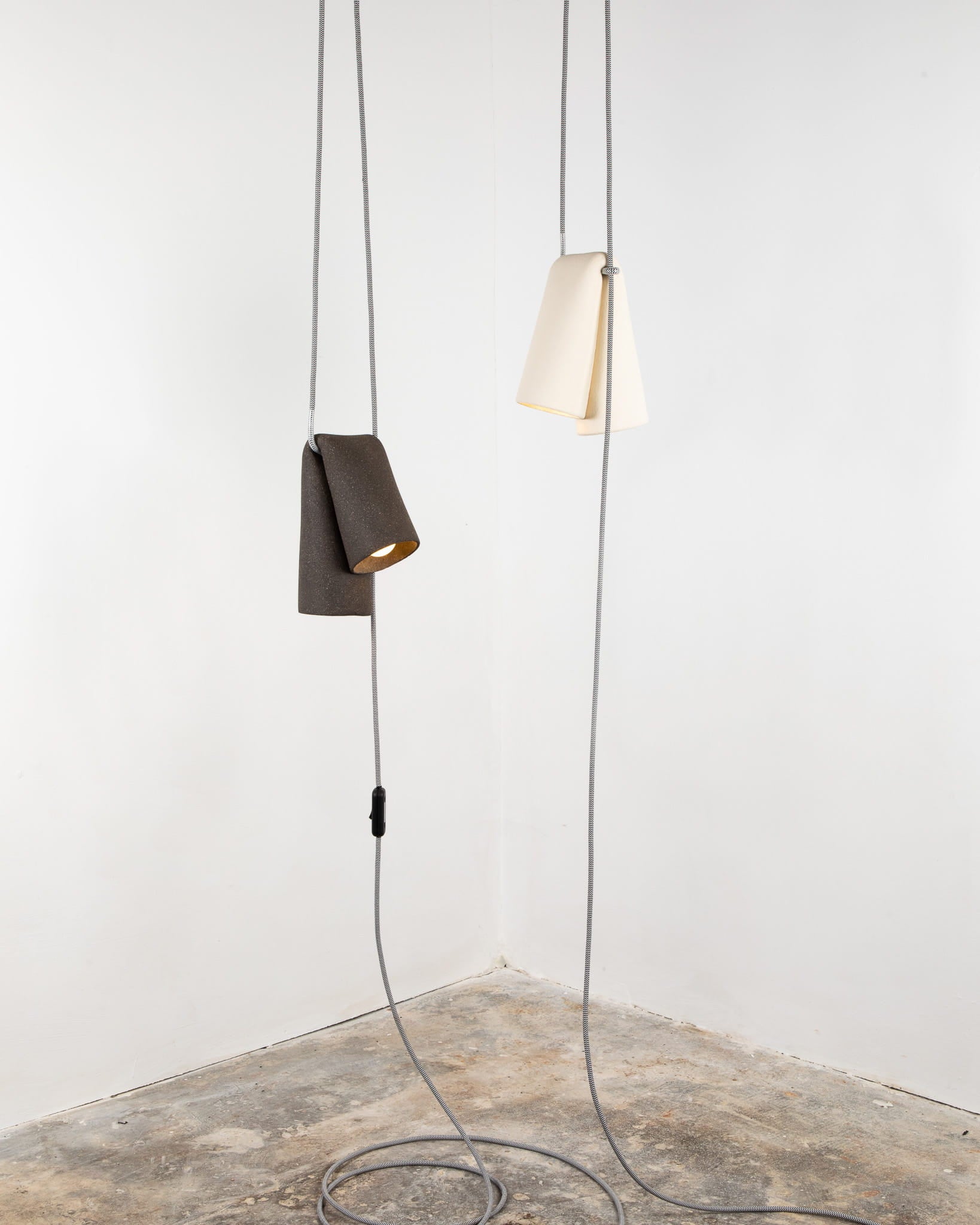 Melo Lamp is a ceramic pendant inspired by the soft, organic forms that wet clay takes as it yields to gravity, bringing a quiet sculptural presence to the space. Designed for versatility, it is suspended from a fabric cable and can be easily adjusted in height to provide either focused task lighting or gentle ambient light.